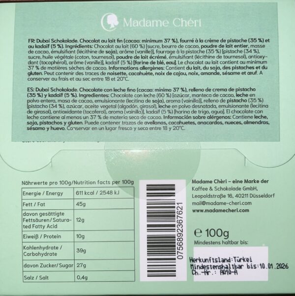 Tablette Dubai Chocolate – Madame Chéri