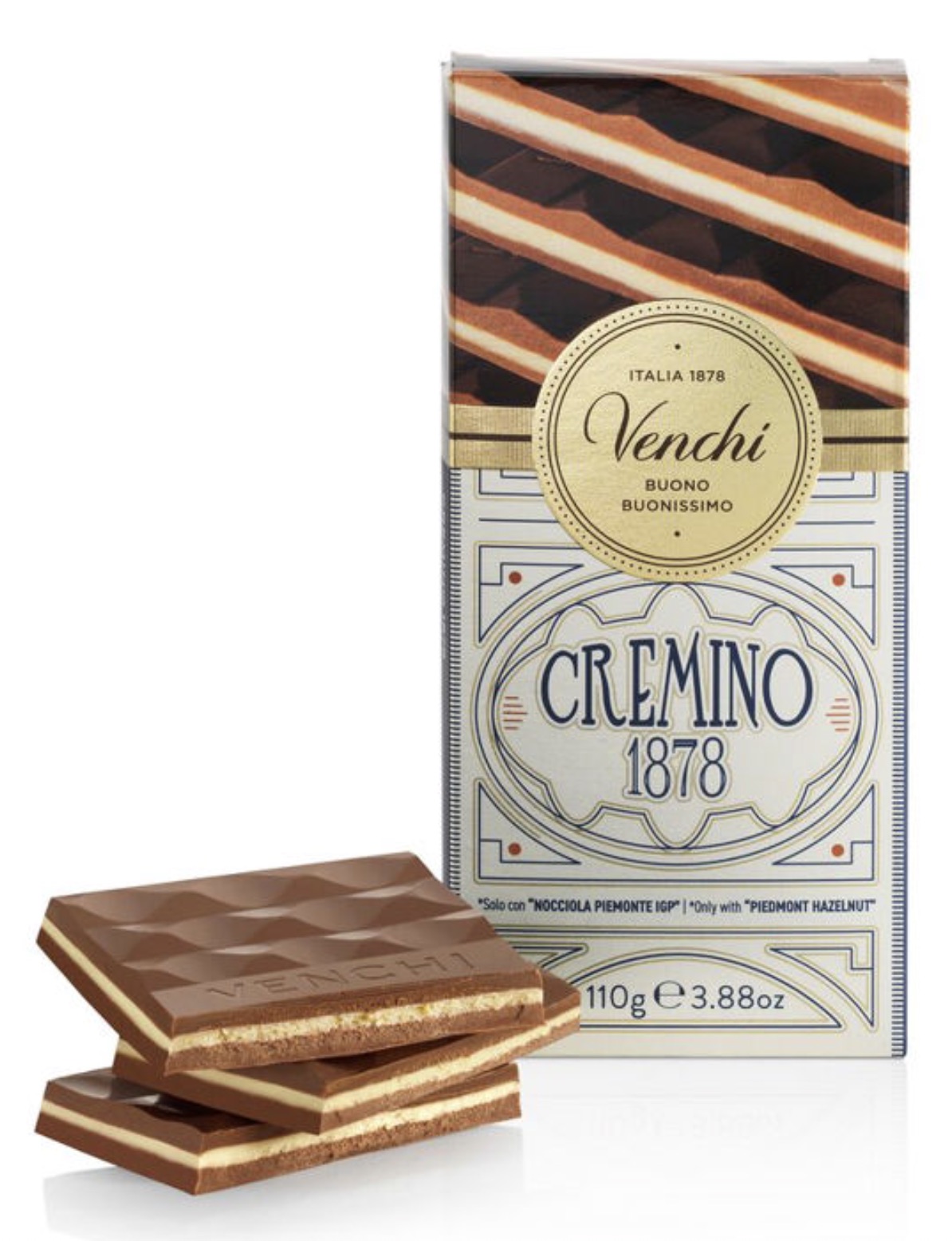 La Tablette Cremino revisite avec élégance un grand classique du Piémont. Elle associe une couche de chocolat blanc à la pâte d’amande, délicatement enveloppée entre deux couches de gianduia au lait aux noisettes du Piémont, pour un équilibre parfait entre douceur et intensité.